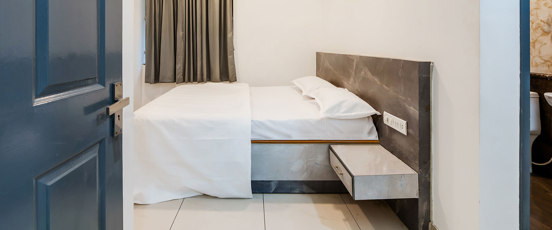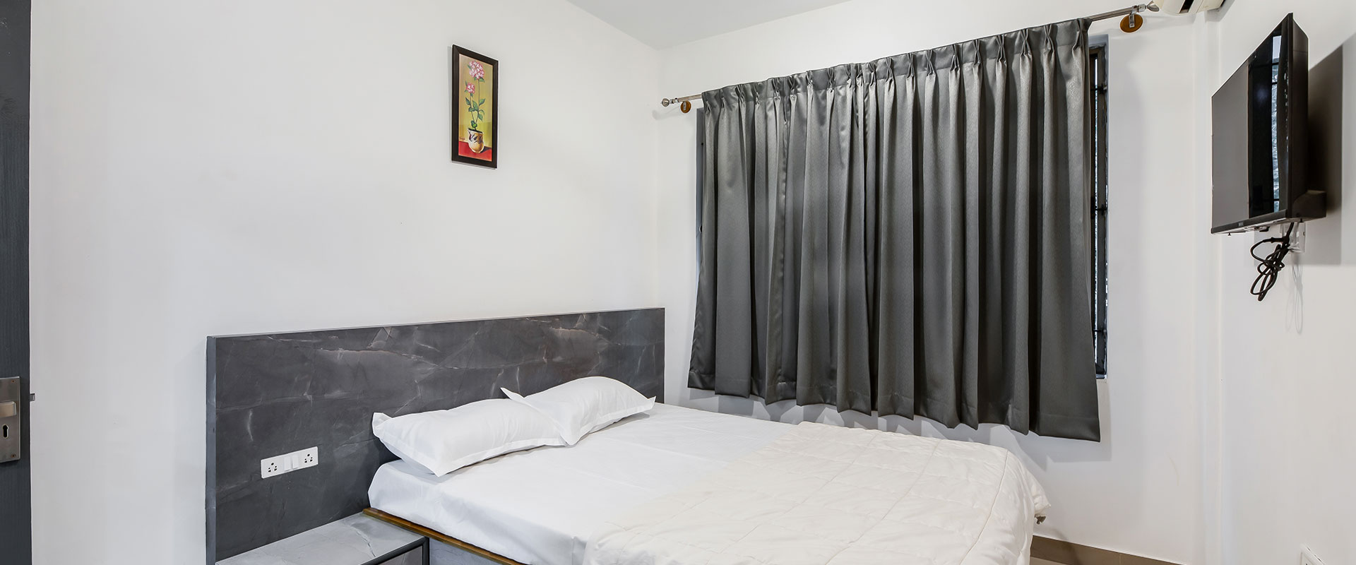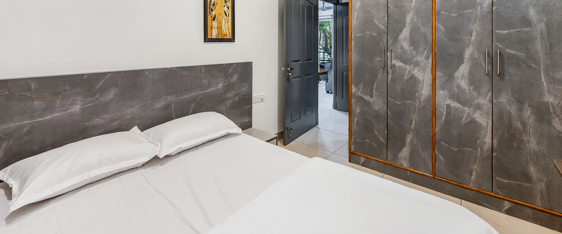 The apartment also includes a comfortable living space and a private balcony, providing a serene retreat.